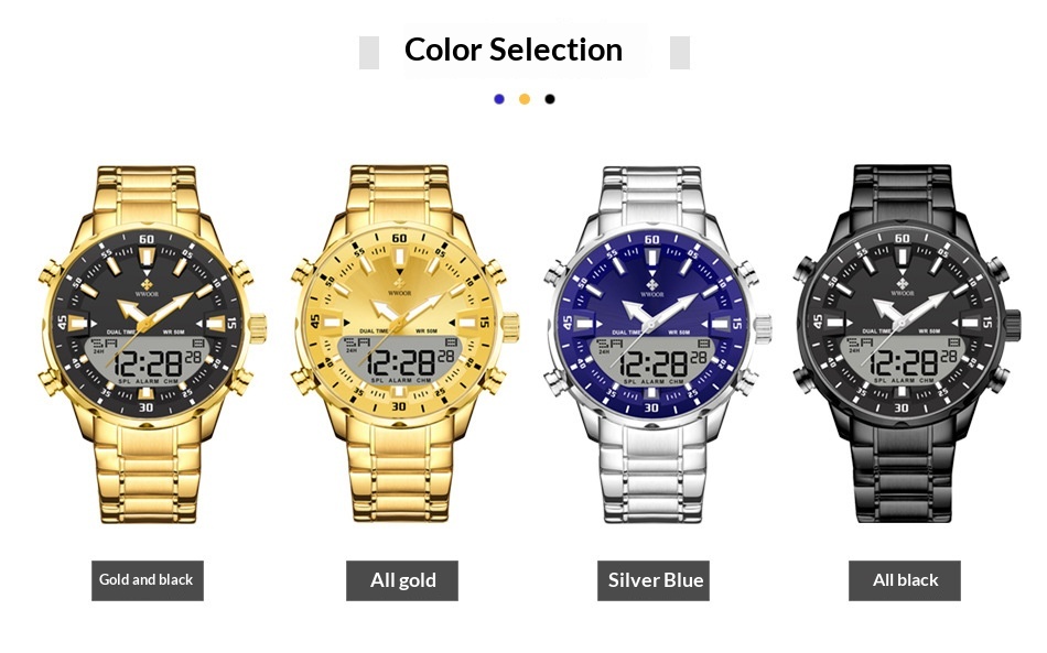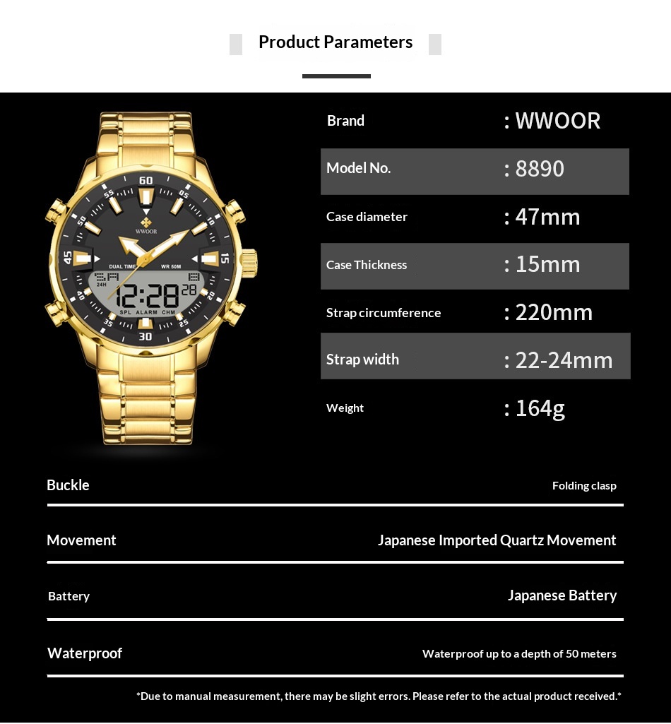 Colores: 8890 caja dorada con esfera dorada, 8890 caja dorada con esfera negra, 8890 caja blanca con esfera azul, 8890 caja negra con esfera negra